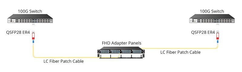 The QSFP28 ER4 enables 100G direct connection scales all the way up to 40km. Just insert two 100GBASE ER4 modules into the corresponding ports on 100G data center switches, then connect them by LC duplex single-mode patch cables.
