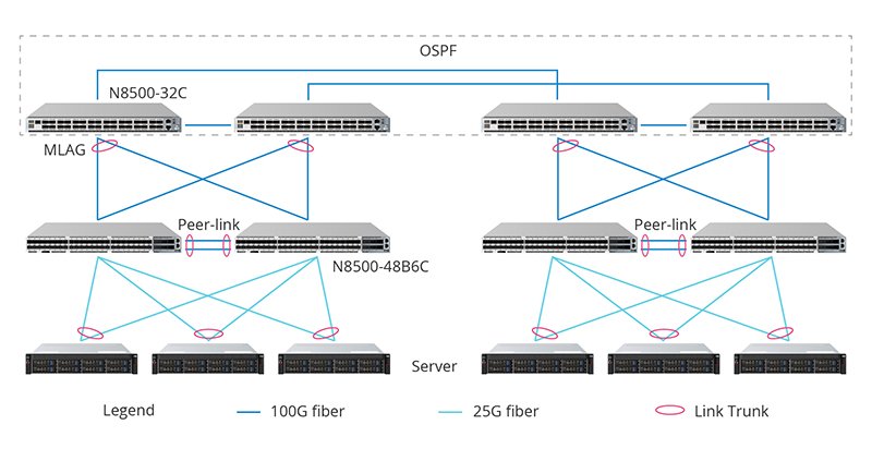 The 100G QSFP28 ER4 optical module is suitable for connecting data centers that are sparsely located, which provides a convenient choice for long-distance interconnection between data centers with 100G services. It is an economical solution for high-speed interconnection between distributed data centers. The following diagram shows the basic DCI network solution using 100G QSFP28 ER4 transceivers.